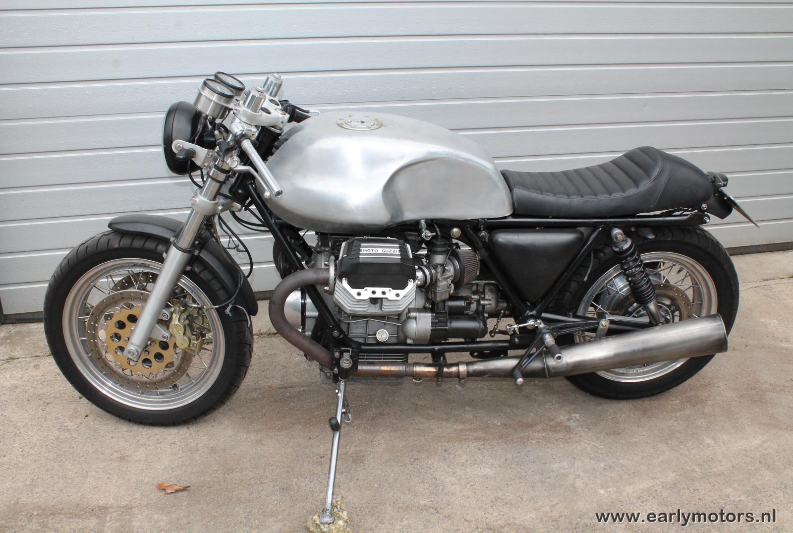 project moto guzzi 850 t5 voor het bouwen van een caferacer motor moet nog lopend gemaakt worden maar er zitten vele mooie elementen op zoals de tank die speciaal uit aluminium gemaakt is motor heeft Nederlandse papieren